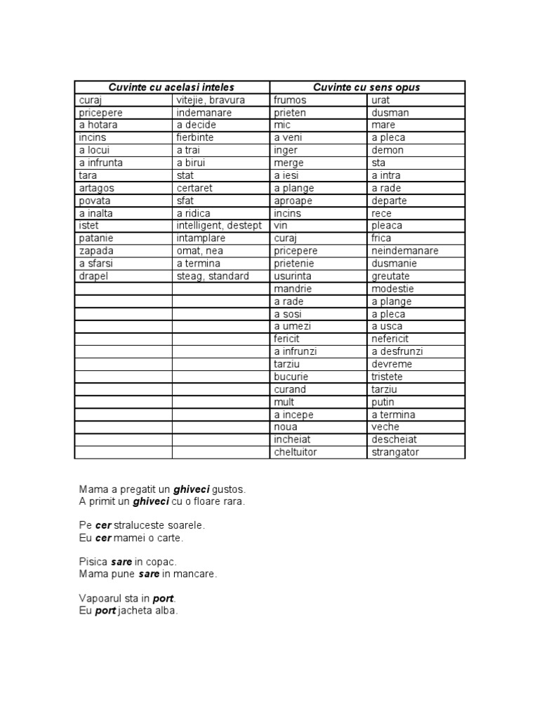 Cuvinte Cu Acelasi Inteles