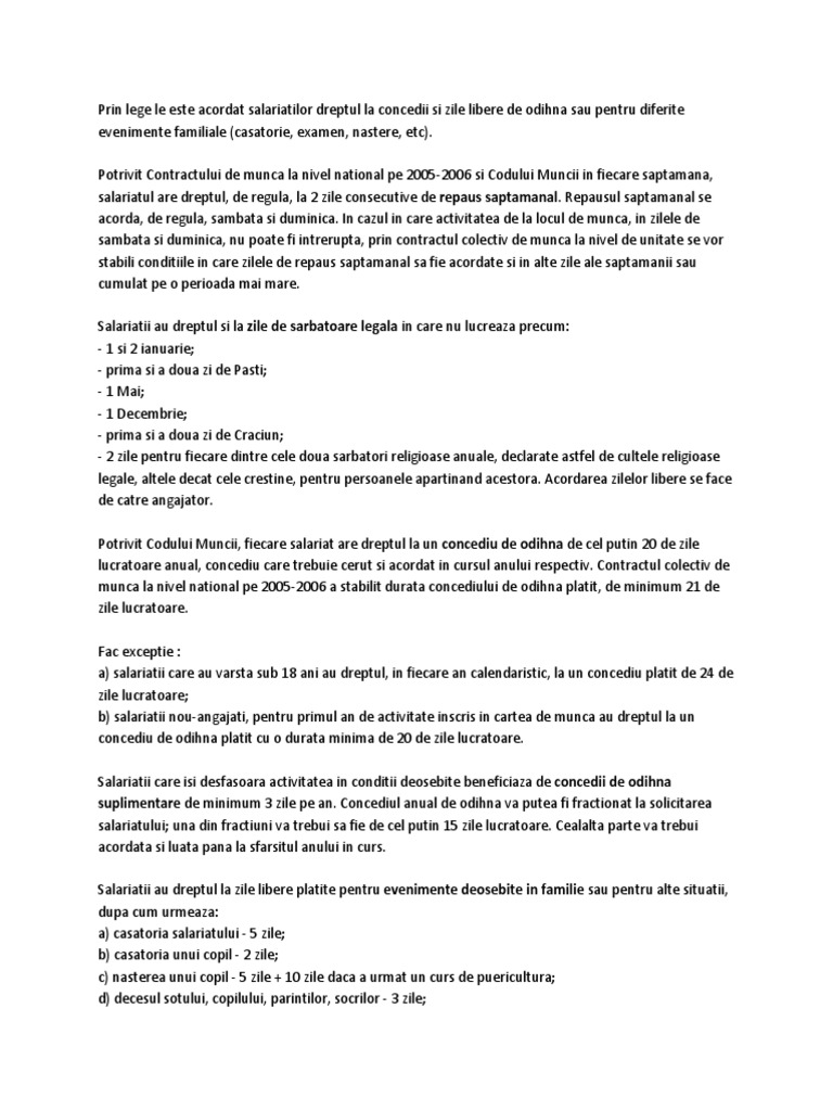 5 zile libere platite pentru casatoria angajatului, 2 zile libere pentru casatoria copilului angajatului. Exista situatii cand, pentru rezolvarea unor probleme de ordin personal, angajatul solicita zile libere dar fara. Zilele libere şi sărbători legale.