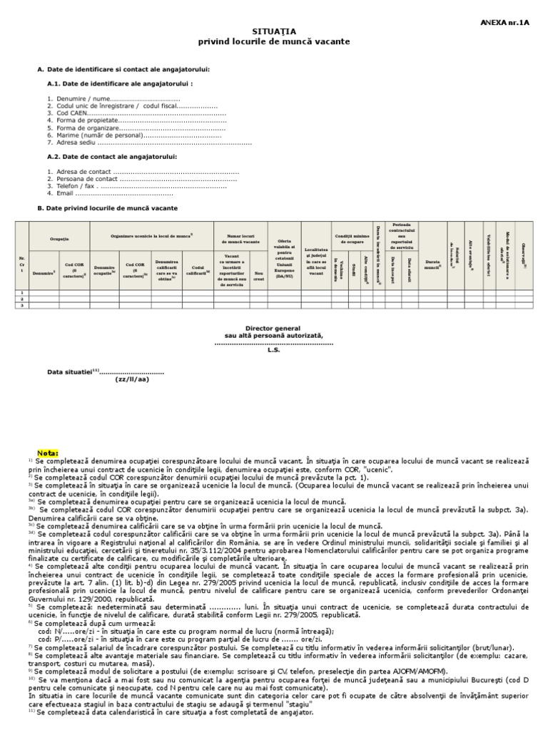 B din prezenta anexă în condiţiile prevăzute de respectivele documente internaţionale. Forma de proprietate privata 5. 1b la normele metodologice) comunicare privind ocuparea locurilor de muncă declarate vacante a.